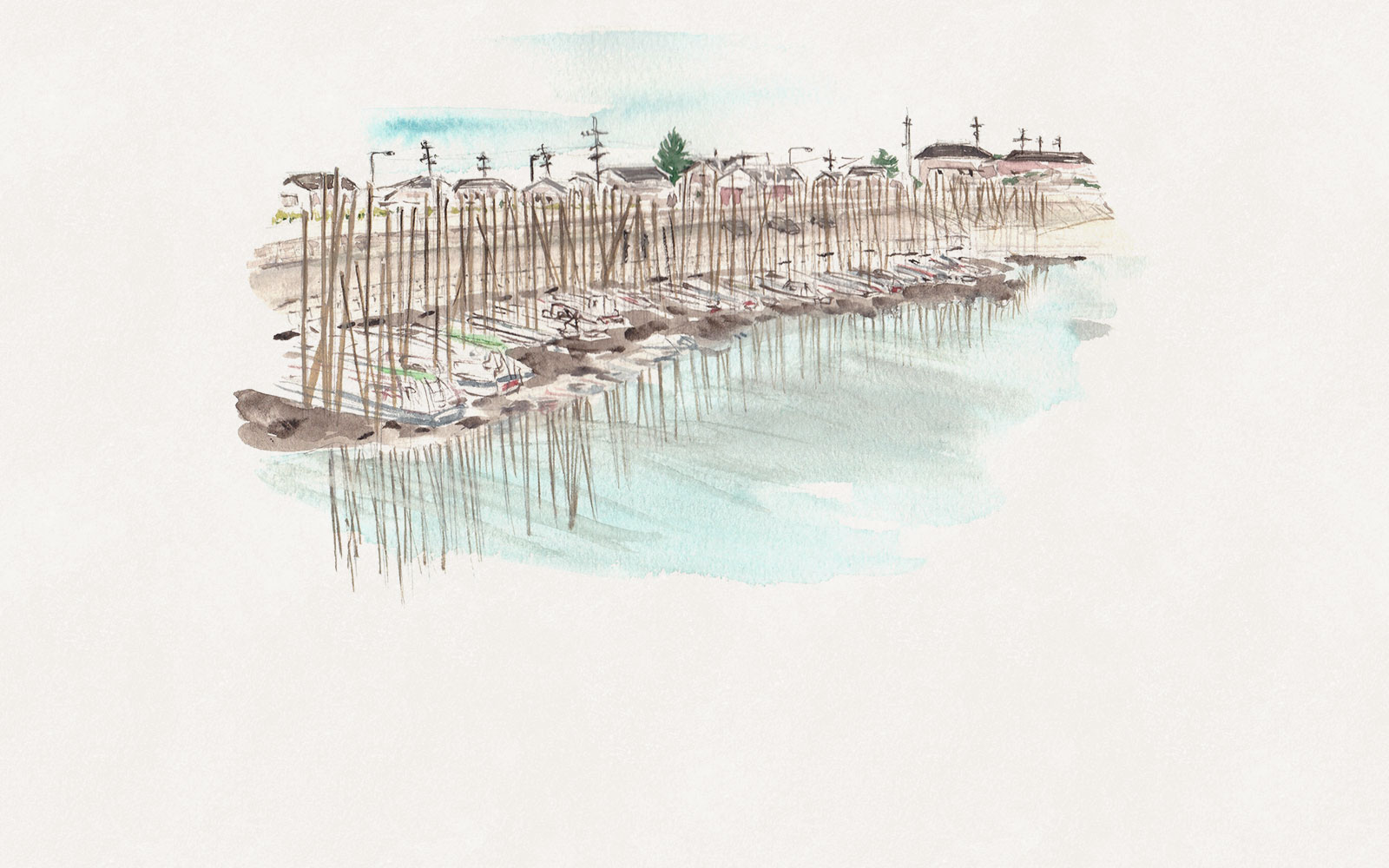 雲写す河川漁港の沖端。